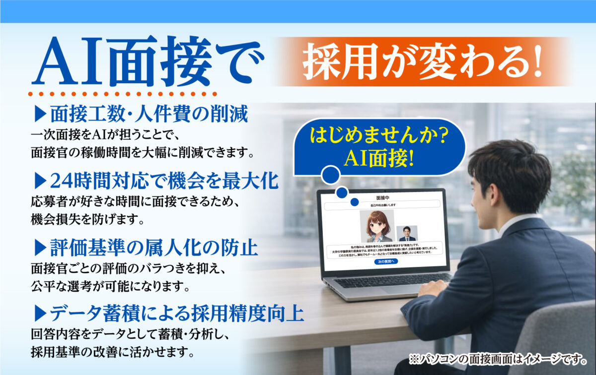 AI面接は、一次面接をAIが自動で行う新しい採用手法です。
