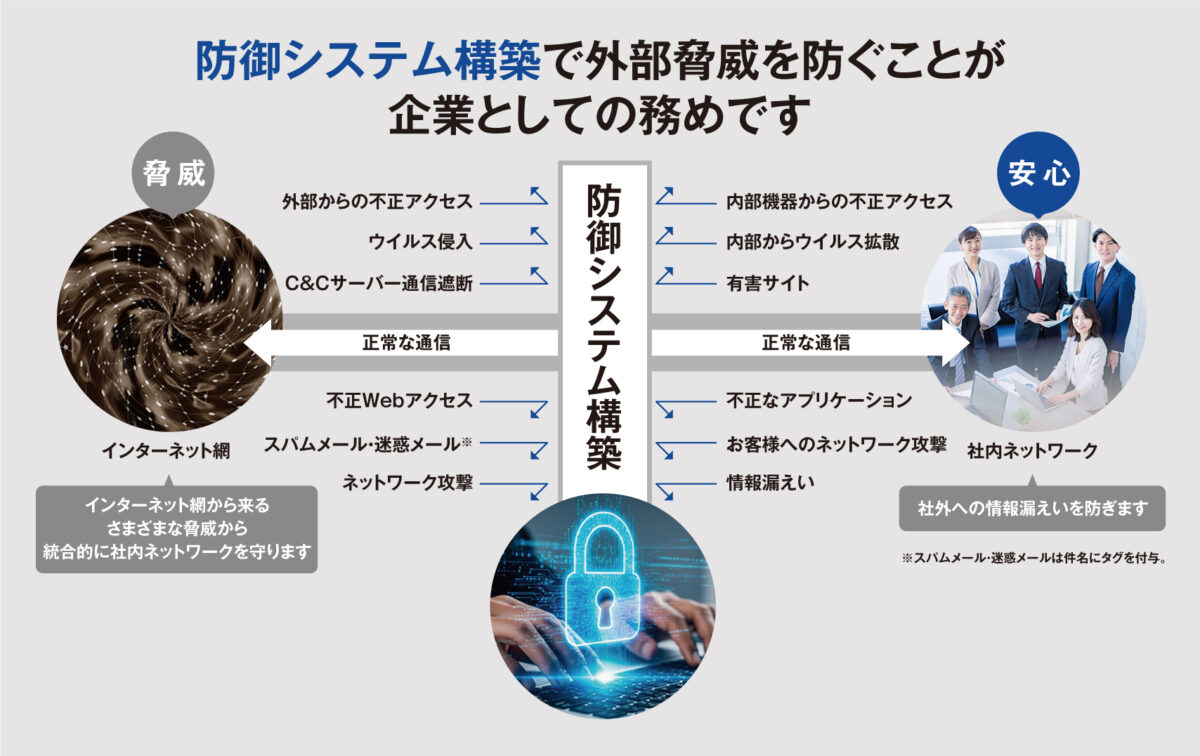 防御システム構築で外部脅威を防ぐことが企業としての務めです。